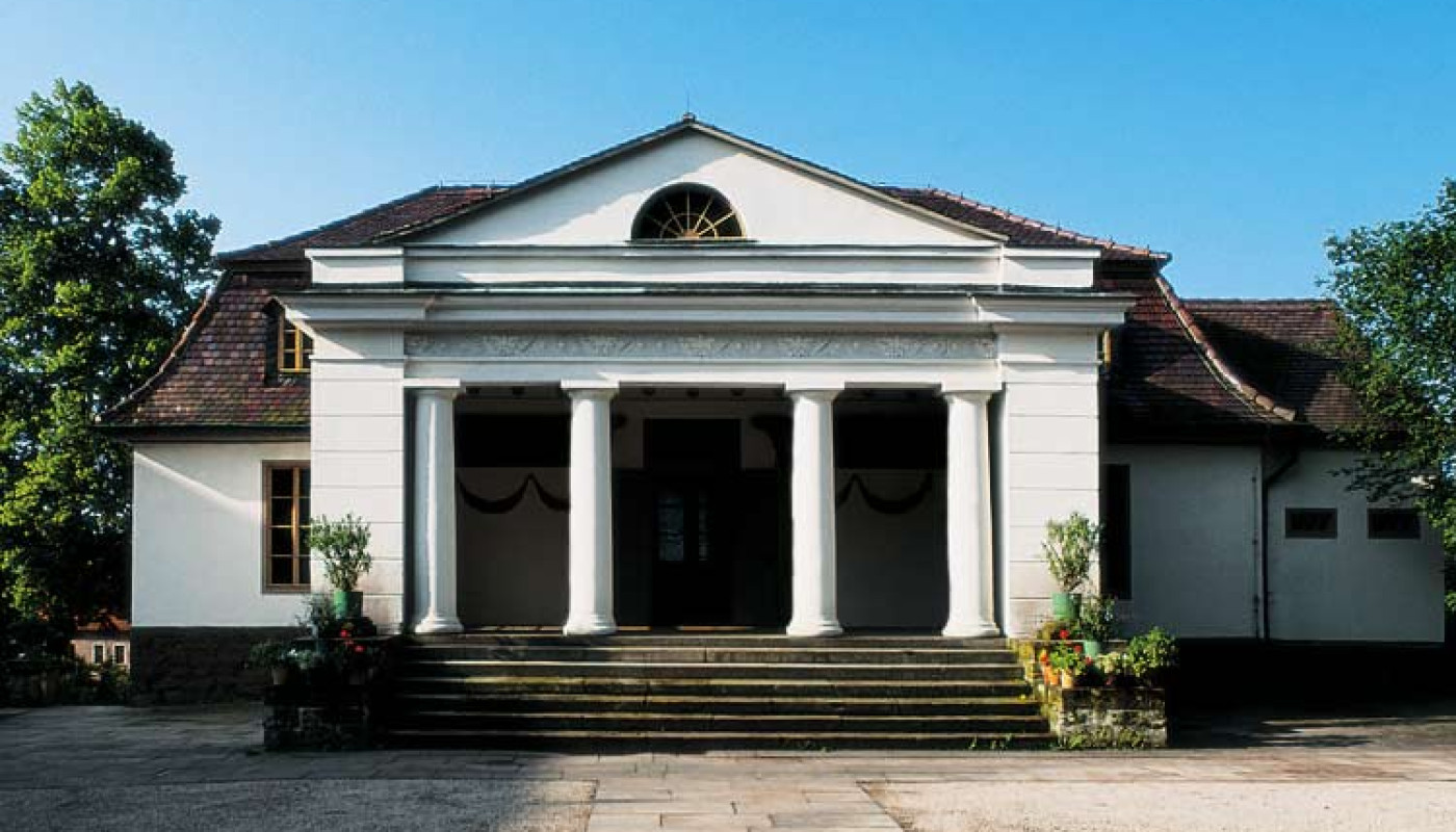 L’ensemble du château, du parc et du théâtre de Kochberg – autrefois le domaine de Charlotte von Stein, l’amour de Goethe – est l’un de plus beaux endroits préservés par la fondation Klassik Stiftung Weimar. Un joyau particulier est le théâtre privé néoclassique avec ses 75 sièges, installé par Carl von Stein vers 1800. La scène et la salle sont décorées avec des colonnes et des rares tapisséries en papier marbré.