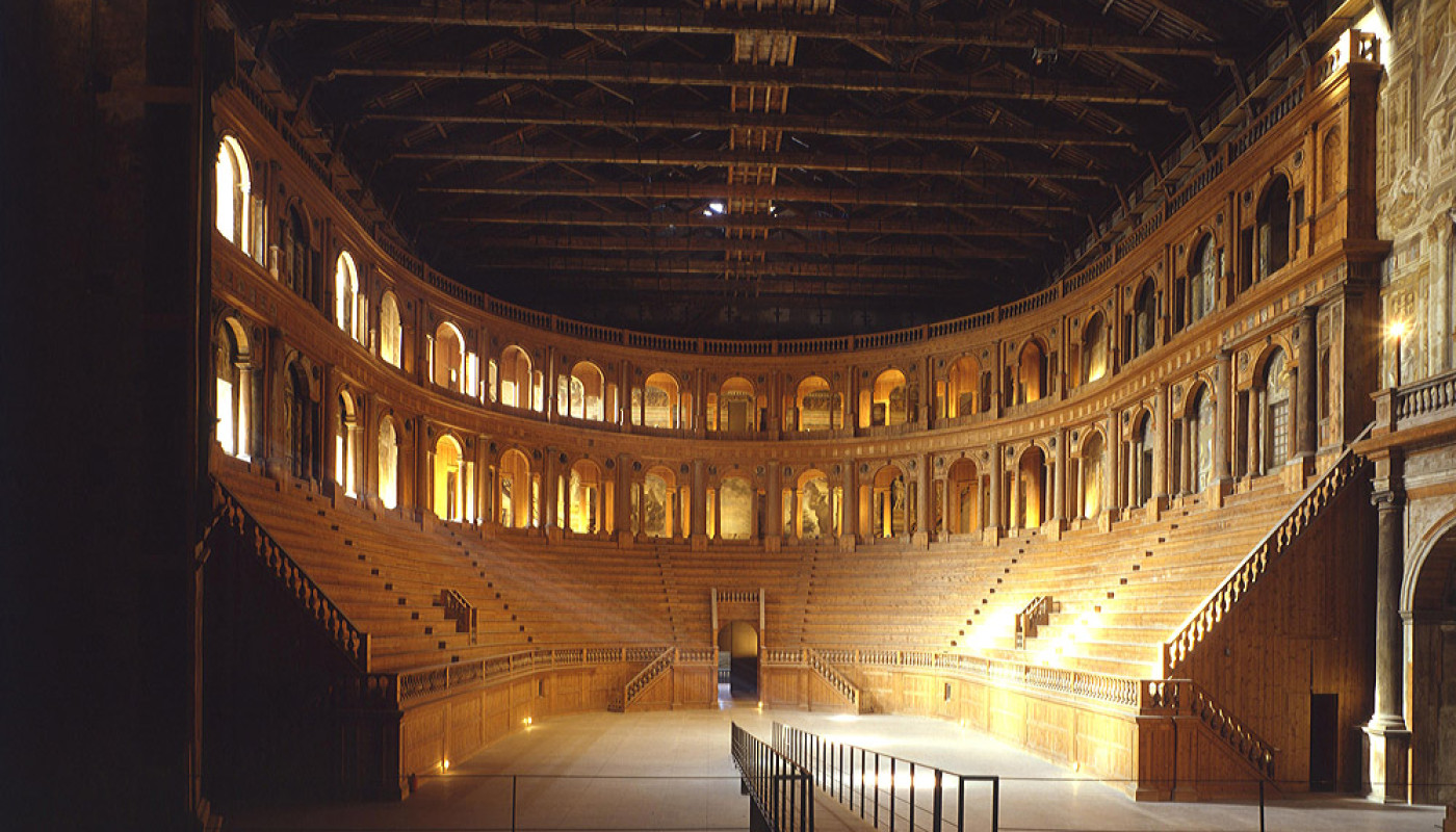 Le théâtre est conçu pour y réaliser des opéras-tournois aux cours desquels alternent opéra et passes d'armes. Par sa taille et son agencement, ce lieu est un modèle de théâtre du baroque : un mur de scène monumental sépare le plateau (avec les premières coulisses amovibles de l'histoire du théâtre) de la salle ; le déroulement peut se poursuivre dans l'espace de la salle et celle-ci, inondée, peut servir de décor pour une bataille navale. Peu de représentations extraordinaires sont données au théâtre Farnèse. Incendié lors d'un bombardemen