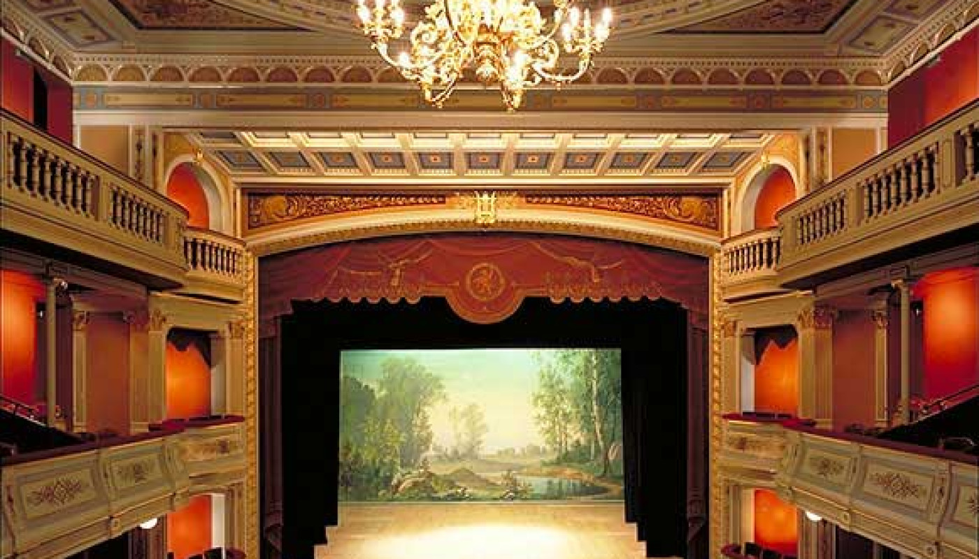 Une campagne de restauration fondamentale de 1989 à 1993 a redonné au théâtre de la ville de Ystad sa magnificence initiale. Une des parties les plus magnifiques est la collection des décors originaux, exécutés dans l'atelier du plus célèbre peintre de théâtre de l'époque en Suède, Carl Ludvig Grabow. Sur le plan technique le théâtre présente aujourd'hui une combinaison géniale de l'ancien et de nouveau. Quand le théâtre a été inauguré en 1894, sa machinerie nouvelle - qui permettait le changement rapide des décors - était déjà dépassée. L'époque baroque, pendant laquelle cette machinerie avait été inventée, était définitivement passée. Donc on n'a pas utilisé la machinerie, et ses tambours et axes en bois, chariots et roues ont disparus peu à peu.